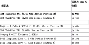 IBM x41 作为x40的后继产品依然延续了x40小巧和轻便的特点,采用了12.1的显示屏。但让我们惊奇的是它采用了1.50GHz Pentium M758的处理器和915GM芯片组,相对于市场中主流便携笔记本电脑所配置的低电压版的1.10GHz或者1.20GHz的Pentium M处理器来说,超轻便笔记本 IBM的 x41无疑再次占领了先机。一般来说,使用轻便笔记本的用户不的不降低对笔记本性能的要求,也就是鱼和熊掌不可兼得,但x41的出现似乎否定了这一点。